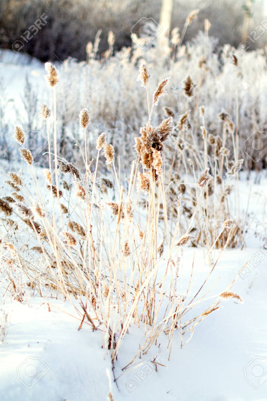 Immagini Stock - Canna Sullo Sfondo Di Neve, Paesaggio Invernale ...